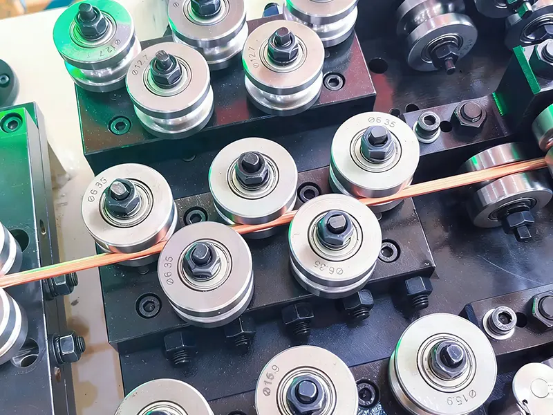 د GRM رولینګ مل فابریکه د لوړ دقیق برقی مقناطیسي تار رولینګ مل وړاندیز کوي ، چې د مستطیل مقناطیسي تارونو دقیق جوړښت لپاره ډیزاین شوی. تجهیزات د استخراج یا سړې رولینګ پروسې کاروي ، او ډاډ ورکوي چې تار د ډیری رولینګ پاسونو له لارې دقیق کونج شکلونه لري ، او د انامیلډ ، کاغذ یا پالیسټر لپاس سره موصل کیدی شي. د رولینګ مل د لوړ پای ضخامت او عرض کنټرول سیسټم لري ترڅو د غوره کویل کثافت او موصلیت کیفیت تضمین کړي ، او په پراخه کچه د لوړ فعالیت بریښنایی تجهیزاتو لکه موټرو ، ټرانسفارمرونو او انورټرونو په جوړولو کې کارول کیږي.